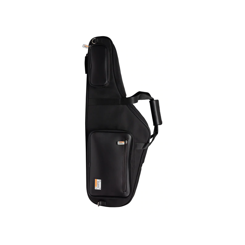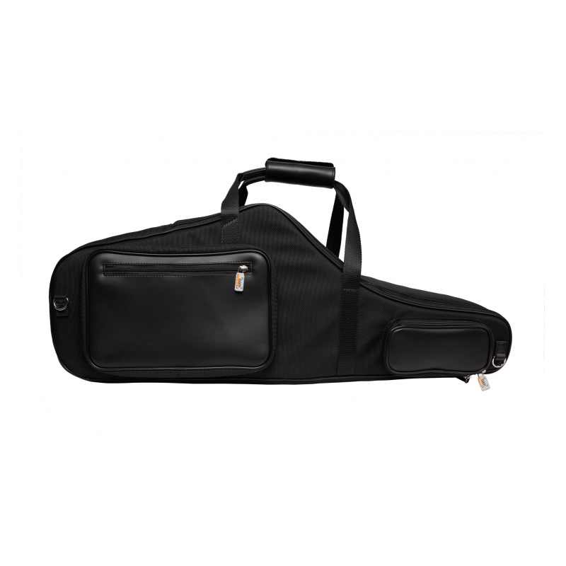 Tenor saxophone case with exterior made of fabric with black cordura and hybrid technology. The case has a black velvet interior that keeps the saxophone safe from scratches.